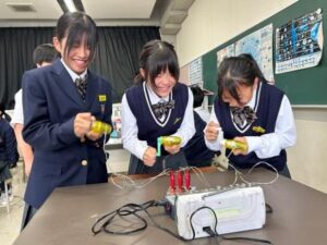 10月23日(木)に、1年生の総合学習として「エネルギ環境講座」がありました。今回の講座は「いろいろな発電方法」というテーマのもとで行われました。磁石とコイルを使用してLEDを発光させる実験や、複数人で力を合わせ人力発電 […]