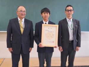 11月26日(水)、「小さな親切」運動 愛媛県本部より2名の方が来校され、第50回「小さな親切」作文コンクールの表彰式が行われました。今年度は、2年生の武田祐輔さんが書いた『ご近所さん』という作文が、応募総数26,625 […]