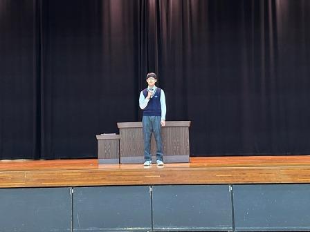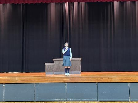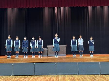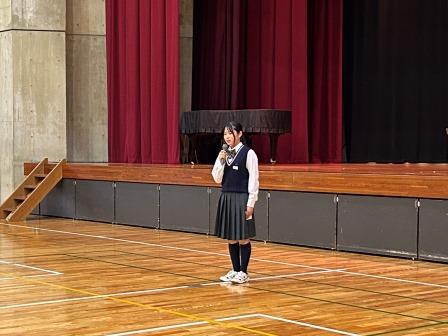 その後、生徒会長の越智さんが激励の言葉を述べ、豊島副校長先生からも激励のお言葉をいただきました。