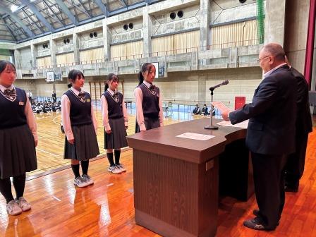 壮行会の後、表彰式を行いました。今回表彰された生徒は以下のとおりです。