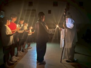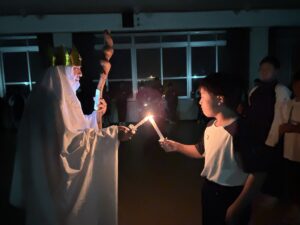 また、夕食後に行ったキャンドルサービスでは、火の神から、「感謝」「希望」「協力」「努力」「友情」「勇気」の6つの火を受け取りました。この6つの火を大切にし、これからの学校生活を送りましょう。