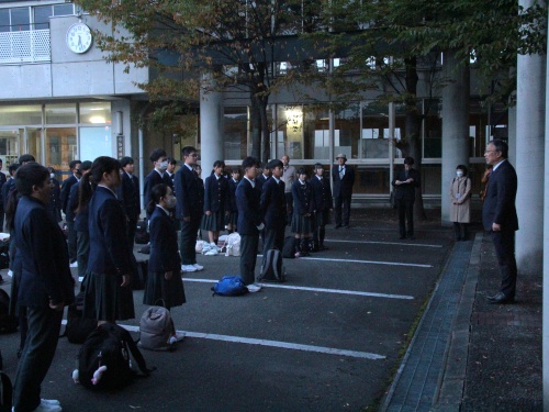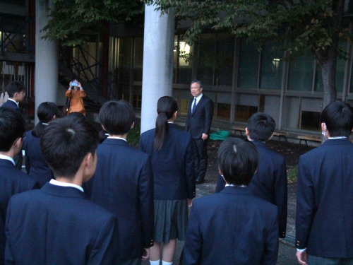 校長先生のご挨拶のあと、生徒を代表して、武田祐輔さんが出発に際しての決意を述べてくれました。