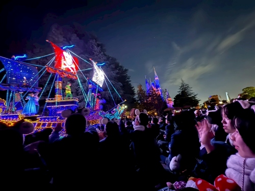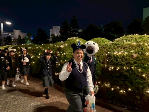11月12日(水)夜のディズニーランドは、少し肌寒いですが、生徒は元気いっぱいでエレクトリカルパレードまで見学してきました。